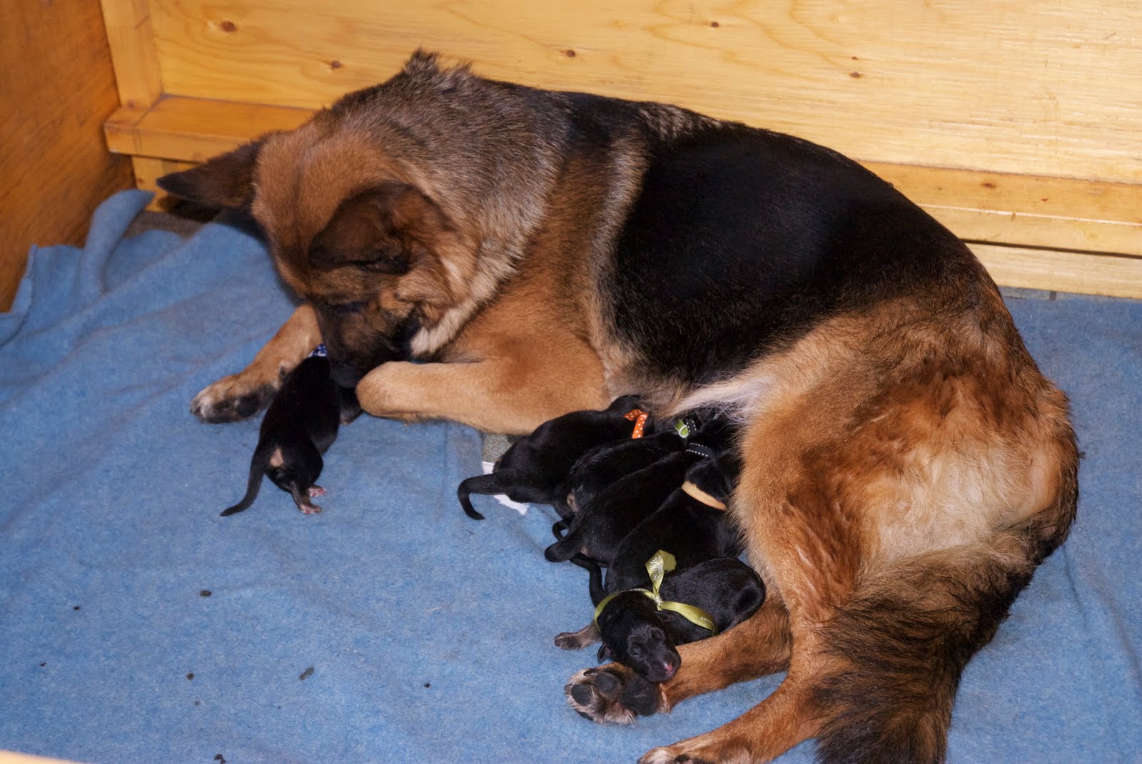 Here we are with what we think is the end of puppy delivery (4 boys and 2 girls) and I go to bed to catch a few minutes of sleep......